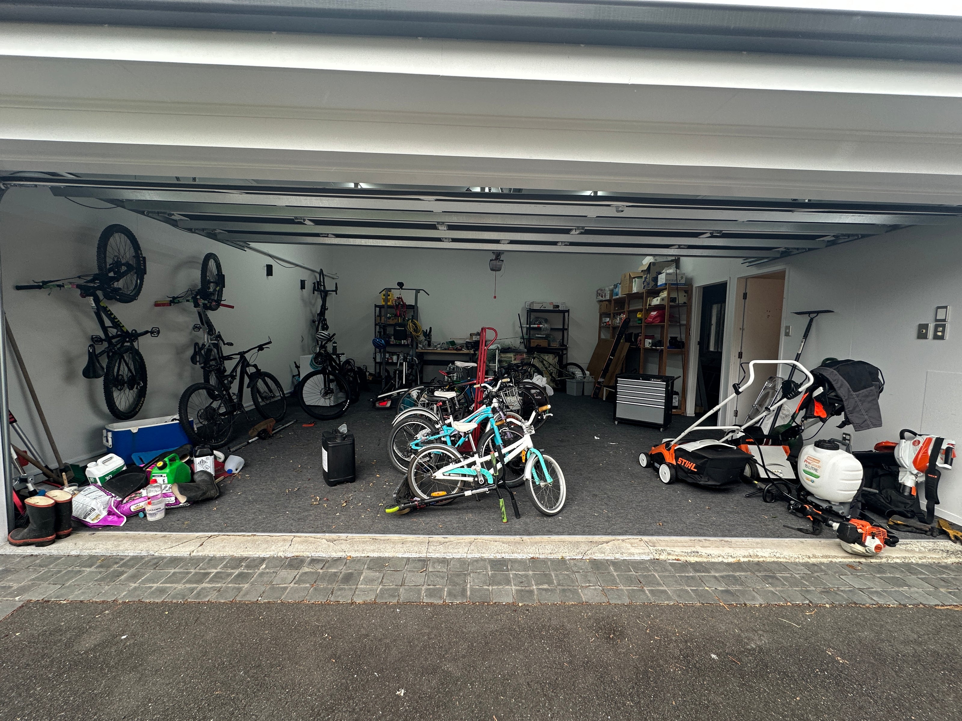 Those big items that have nowhere else to go, can dominate the space and as a result everything else just gets thrown in and around them. Bike and Garden equipment are some of the worst offenders!