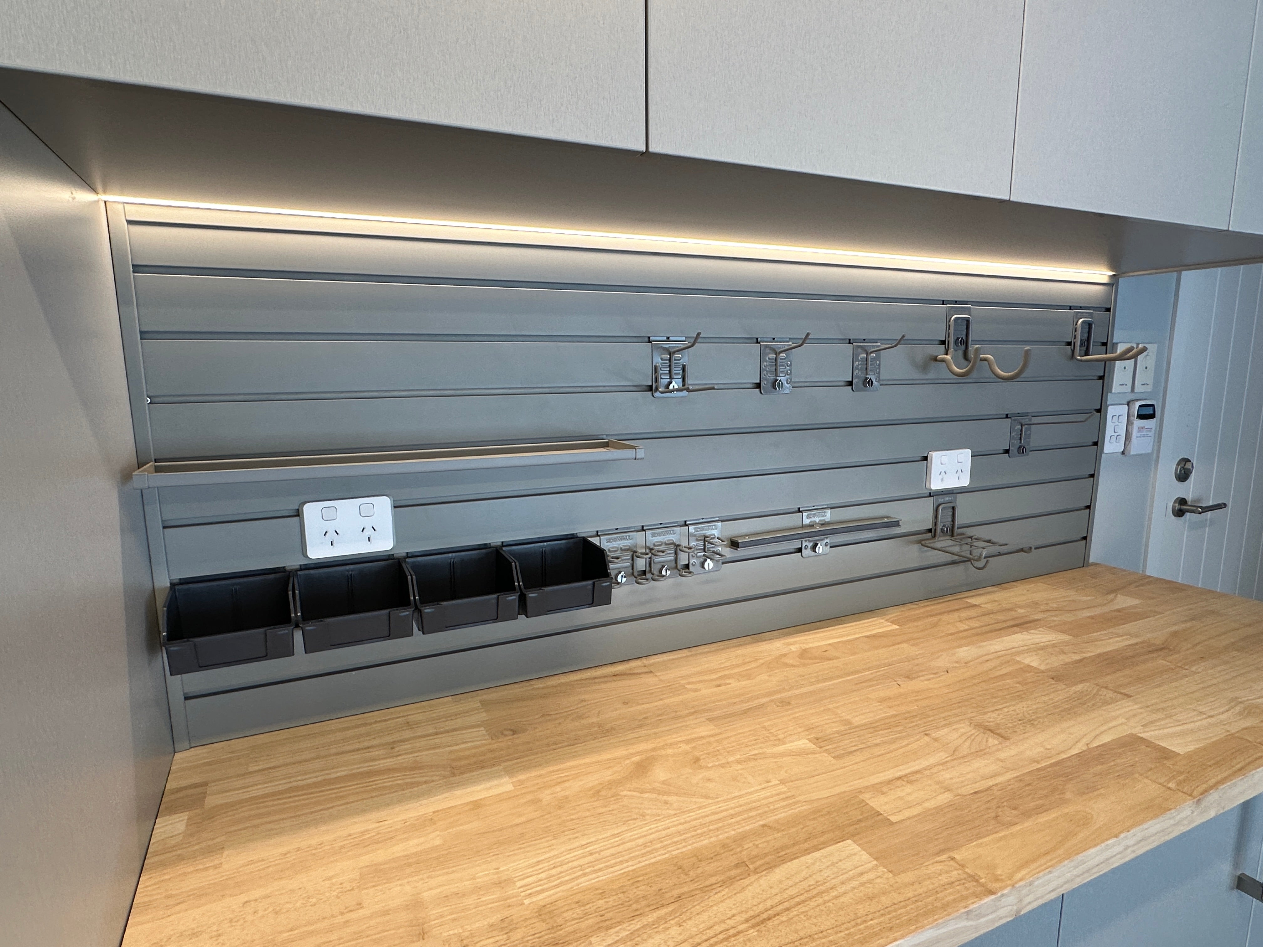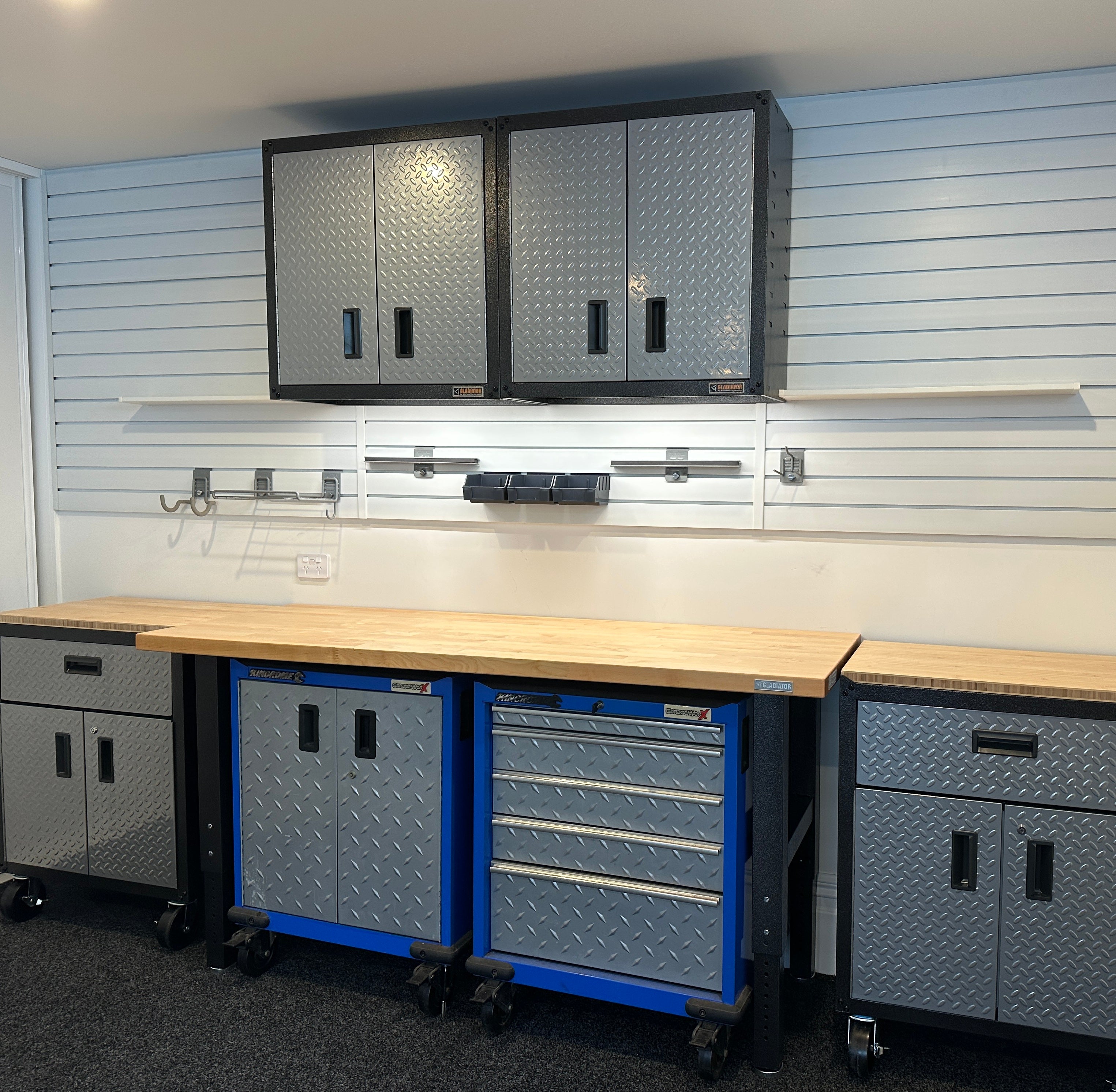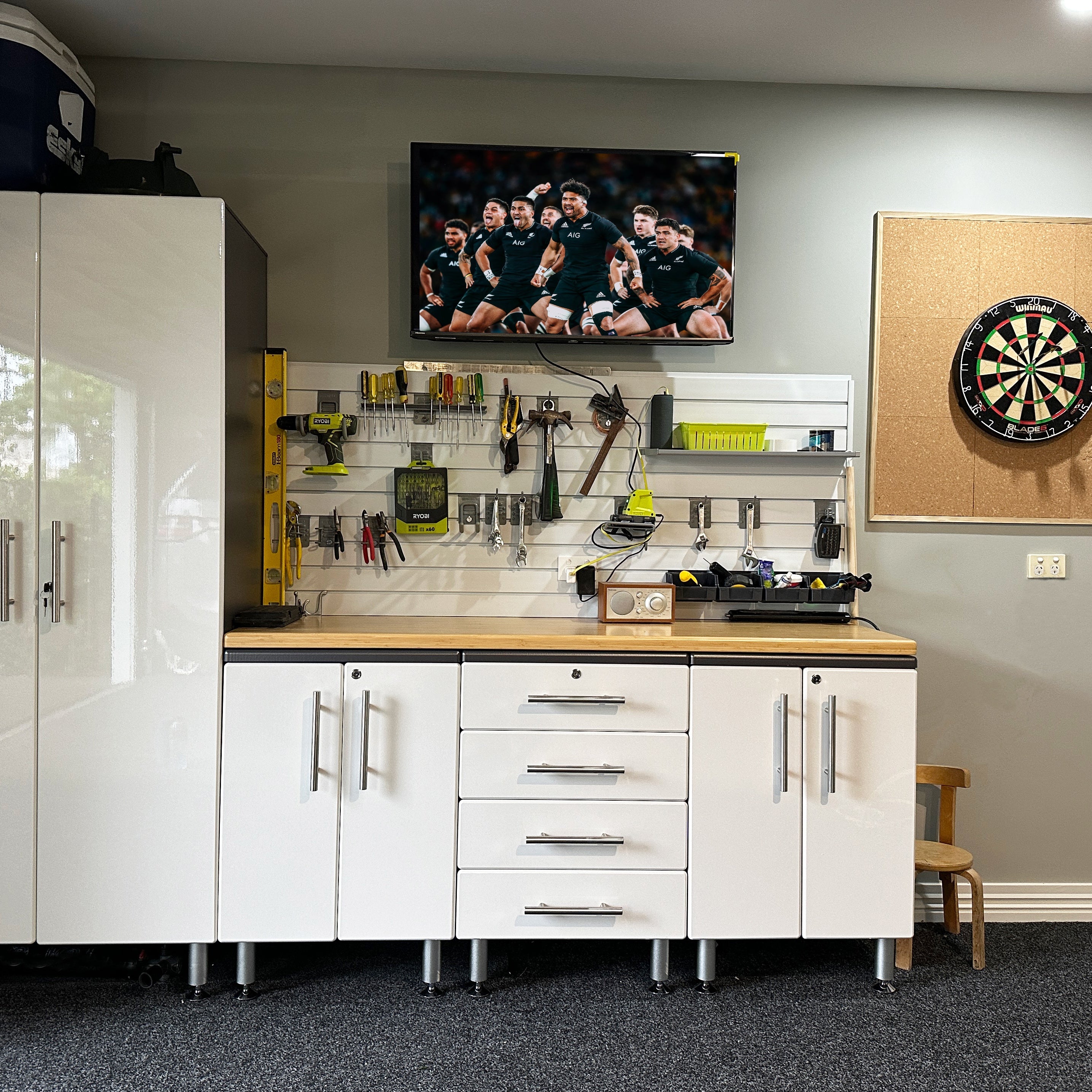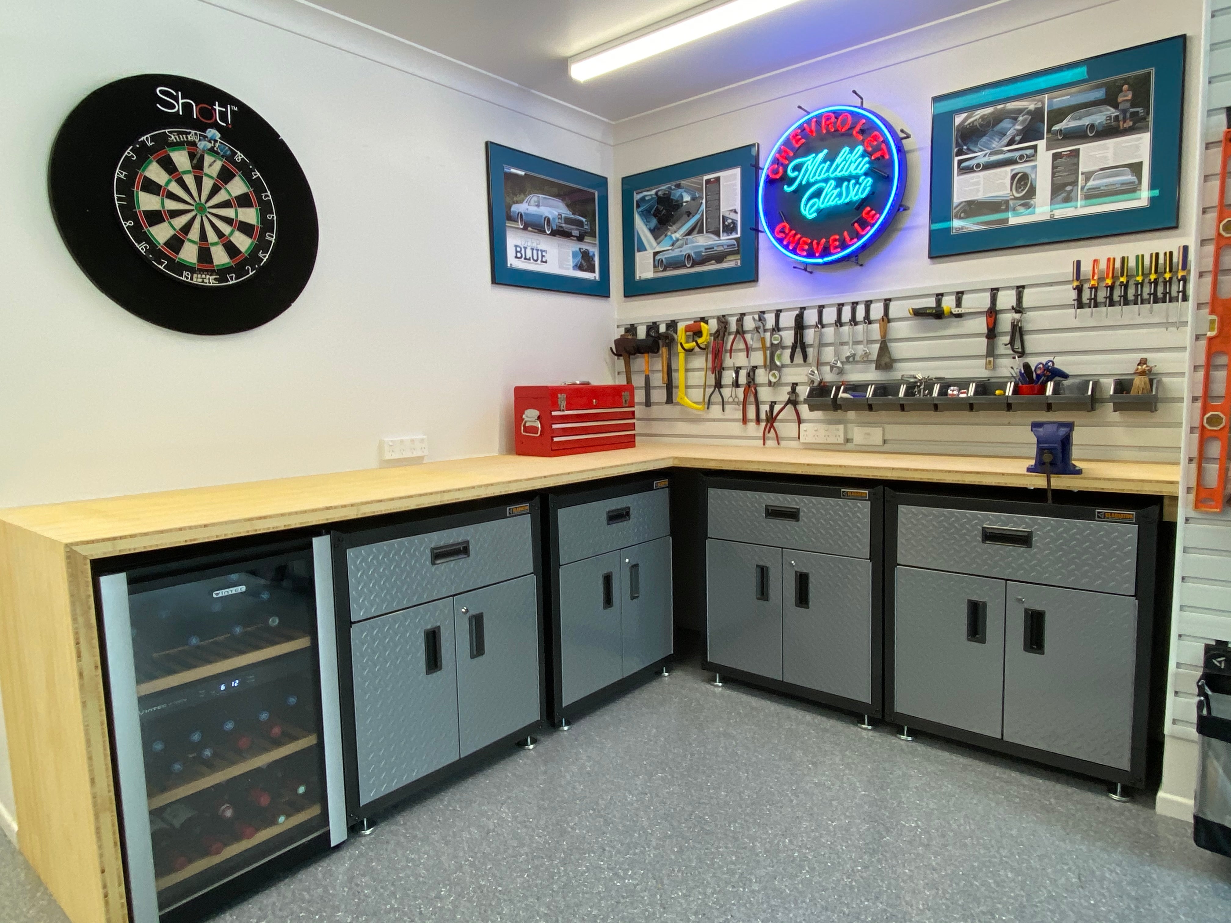 From small modular work station, to a small 'man-space', to serious custom-designed workshops and everything in between, here are some recent examples of work area we've created in people's garages.