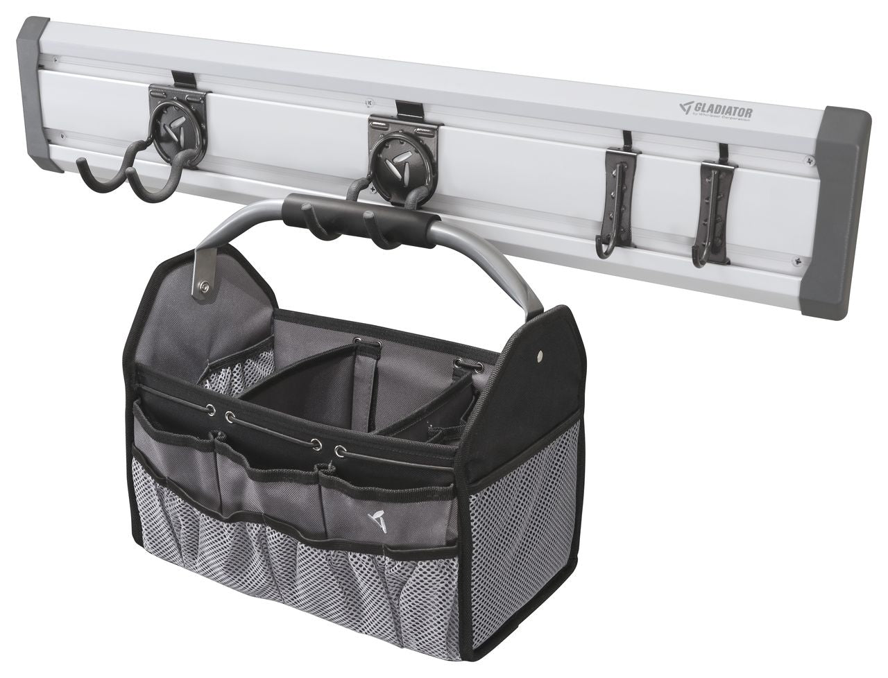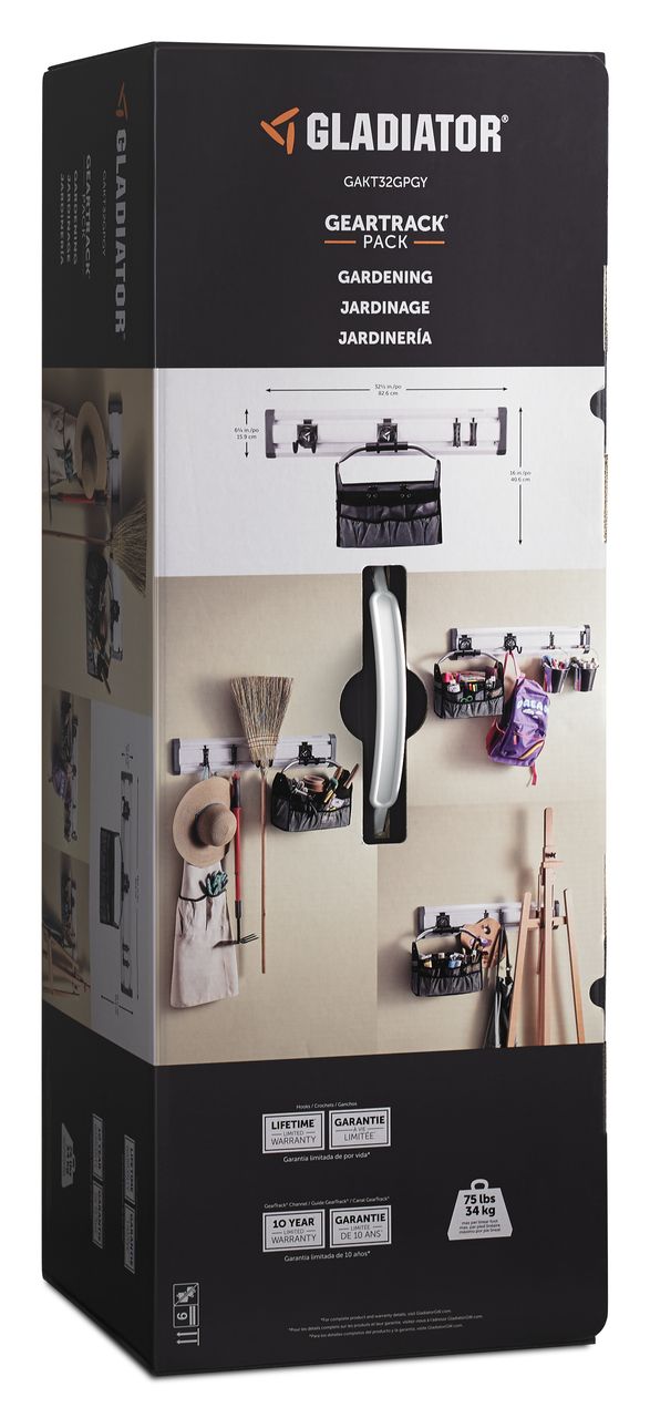 Pack includes: 1 x Project Bag, 2 x Scoop Hooks, 2 x J Hooks, 1 x 32" GearTrack® Channel, 2 x End Caps, 6 x Colour Matched Screws, 1 x Compatible Driver Bit